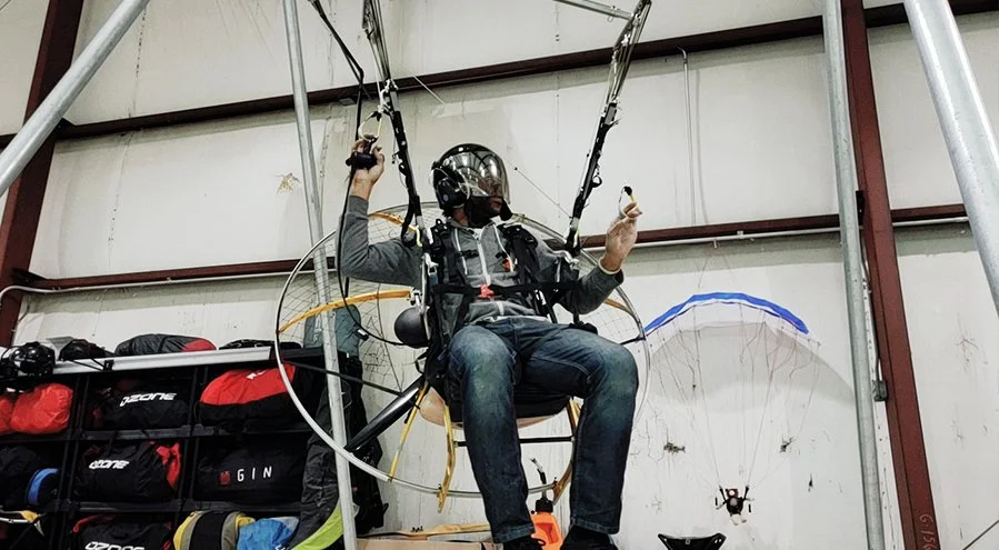 This is where we teach you all in flight manuevers and techniques physically so we don't have to explain it over a radio later. From getting in and out of your harness to emergency descent procedures. We can show and do it all on our full motion state-of-the-art paramotor simulator.